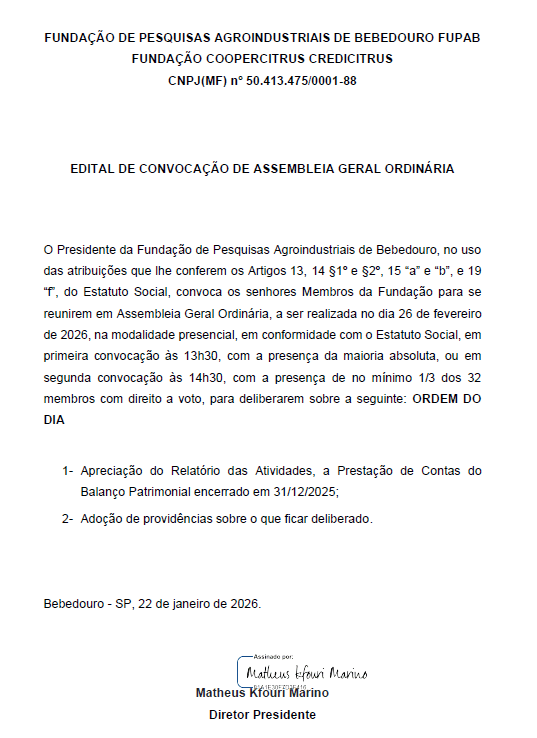 Instituída em 11 de julho de 1978, a Fundação de Pesquisas Agroindustriais de Bebedouro (FUPAB), que desde 2019, é denominada Fundação Coopercitrus Credicitrus, é uma entidade sem fins lucrativos que visa o desenvolvimento econômico, social e ambiental da região de atuação das cooperativas mantenedoras.